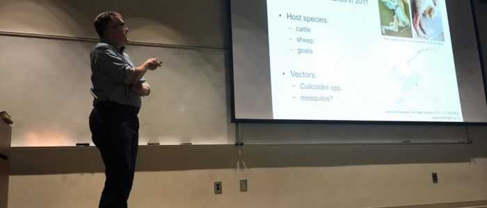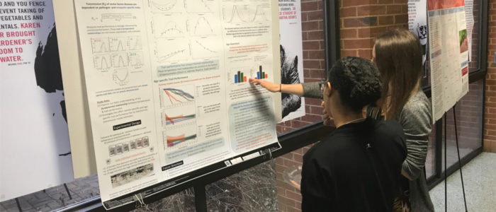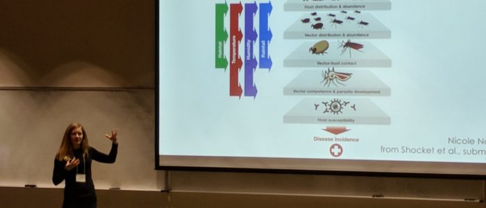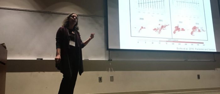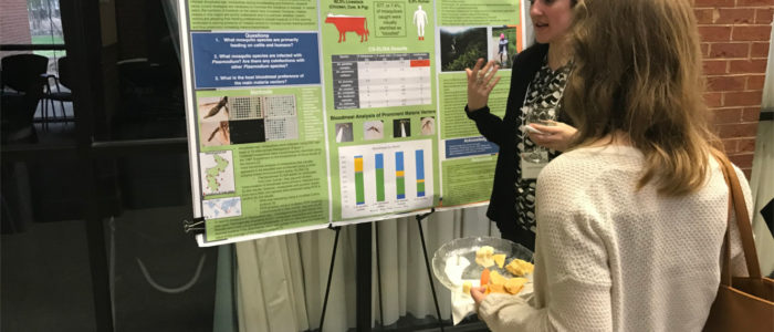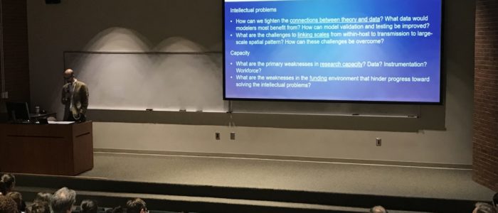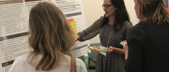 On Saturday, February 24th, 2018, the Center for the Ecology of Infectious Diseases held it’s first disease ecology symposium, focusing on the Population Biology of Vector-borne Diseases. 105 students, faculty members, and research scientists from across the nation gathered at the Odum School of Ecology to hear lectures from 14 of the world’s leading experts on vector-borne diseases. The wide range of speakers represented an authoritative, international point of view, providing attendees the opportunity to examine the vector-borne biology of human and animal diseases across a multitude of perspectives including biology, ecology, veterinary medicine, entomology, epidemiology, biostatistics, computer science and geography. Following the lectures, CEID Director John Drake led a future directions panel discussion, in which needs and opportunities for further research and collaboration were identified. Providing additional opportunities for collaboration and networking, our event ended with a poster session and reception, in which 24 attending students, faculty members, and scientists shared their related work.